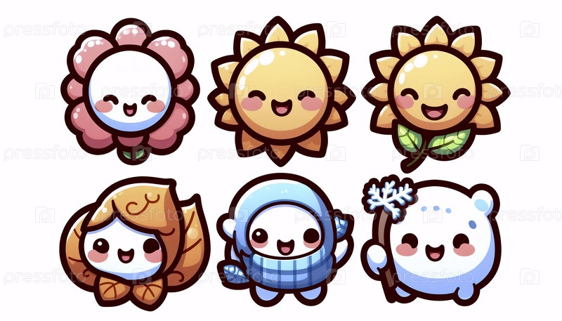 Набор клипартов с сезонными иконами кавайи, Ai generated image