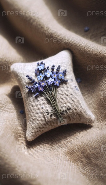 Лавандовый мешок с прессованным цветочным крестом на льне, Ai generated image