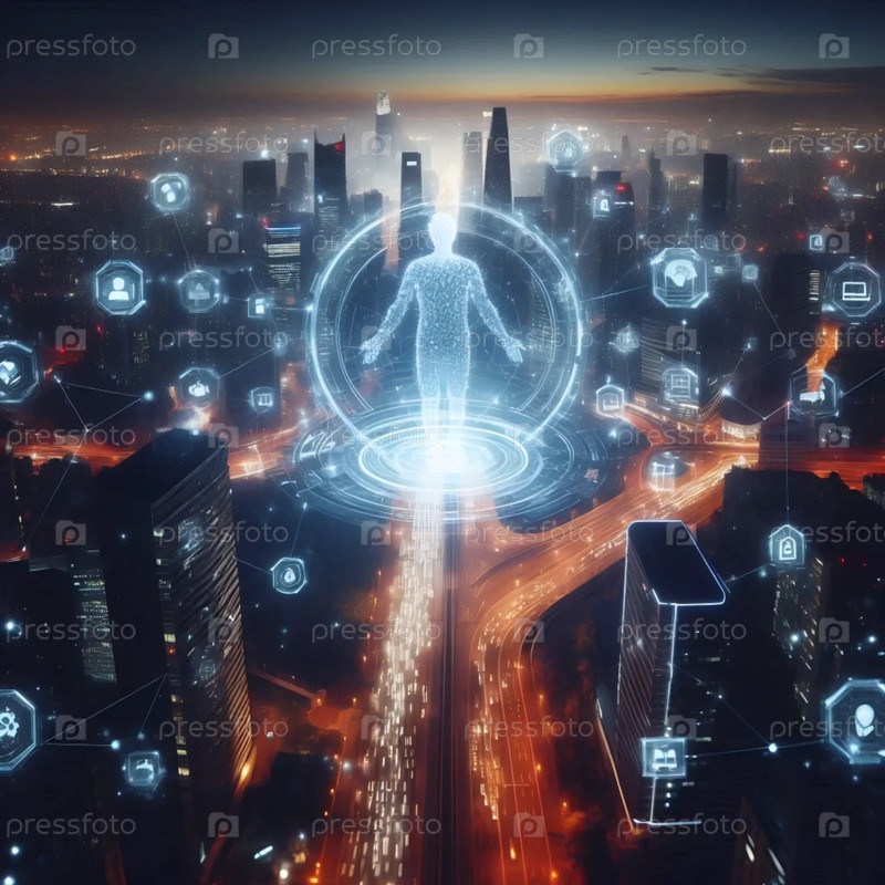 Цифровой ангел, состоящий из светящихся смайликов и сигналов wifi, Ai создал изображение