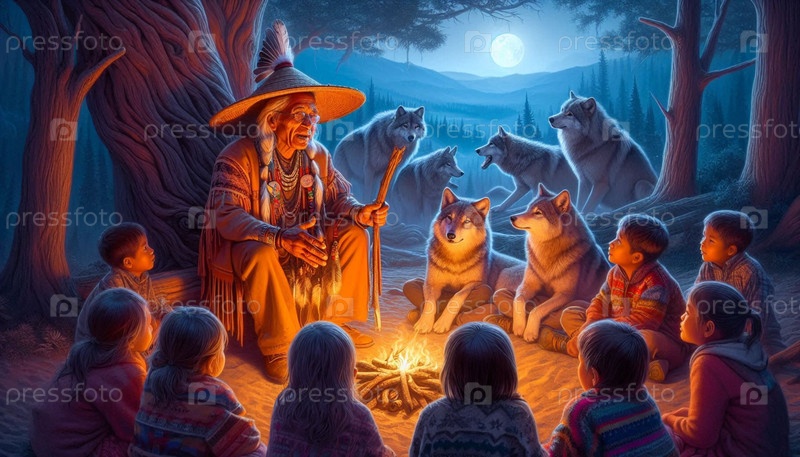 Культовый коренной американский волк The Guardian, AI generated image