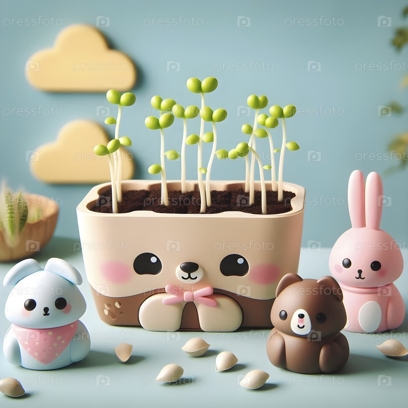 Плюшевая игрушка, наполненная семенами, которые вырастают в цветы, Ai created image
