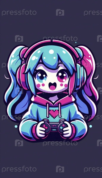 Простой кавайский персонаж с двумя хвостами игровой девушки, Ai generated image