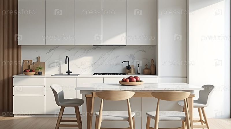 Кухня с мраморными столиками, image created using AI