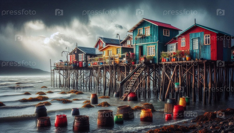 Чилийские дома Палафито, создано искусственным интеллектом изображение