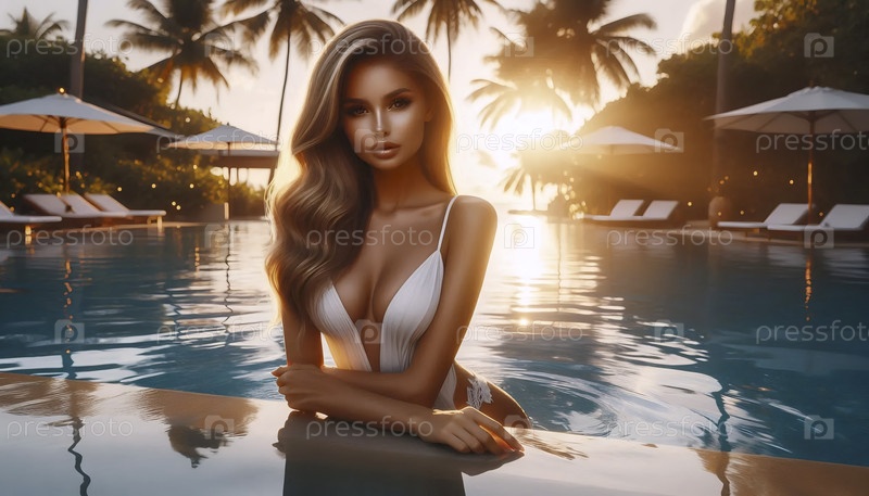 Женщина плавает в бассейне, Ai generated image
