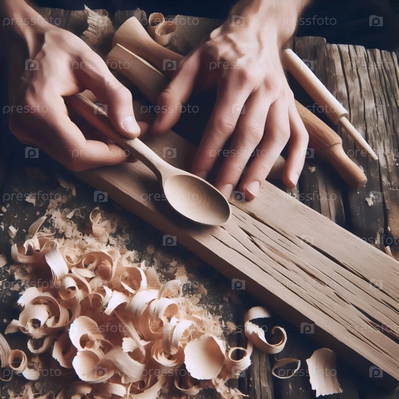 Вырезание деревянной ложки, Ai generated image
