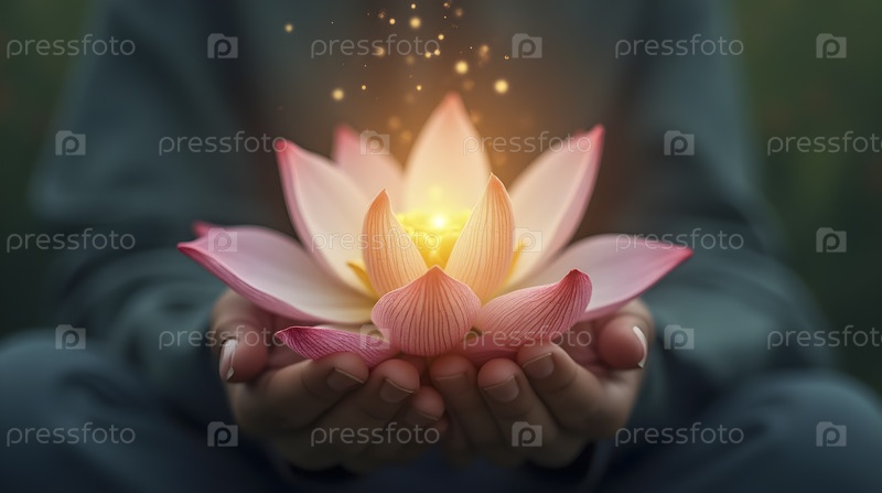Плавающий цветок лотоса со светящимся ядром, Ai generated image