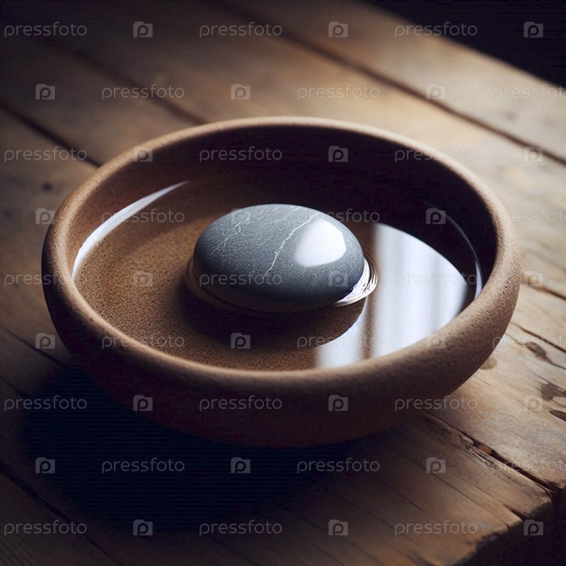 Гладкий камень в маленькой глиняной чашке с водой, Ai generated image