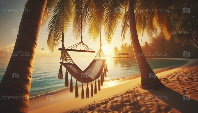 Вывешивая гамак для йоги между двумя пальмами на тропическом пляже, Ай создал изображение