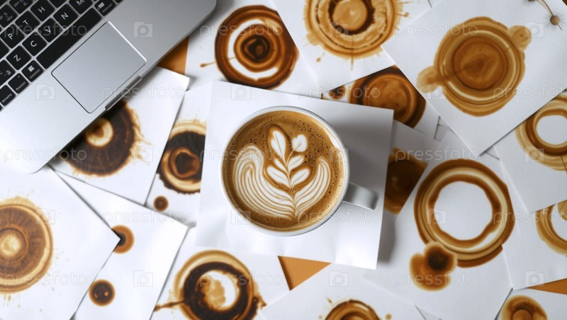 Искусство, ноутбук с чашкой кофе, Ai generated image Lat