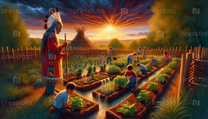 Коренные американские дождевые сады, ИИ сгенерированное изображение