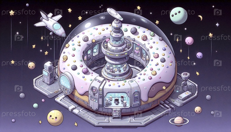 Подробная иллюстрация чиби крошечной космической станции, Ai generated image