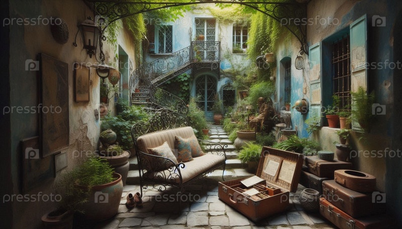 Секретный садовый двор с кованым железом, Ai generated image