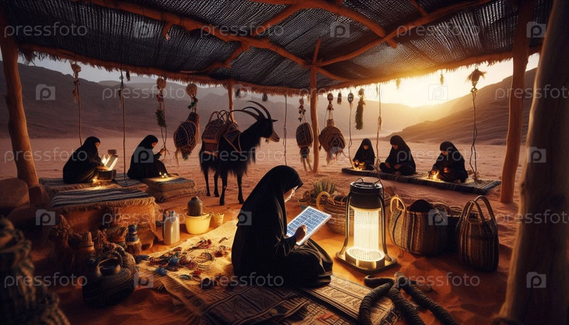 Бедуинские солнечные палатки, ИИ-генерированное изображение