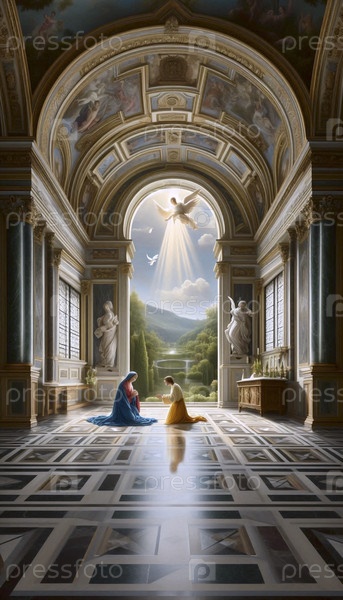 Благовещение в интерьере эпохи Возрождения, Ai generated image