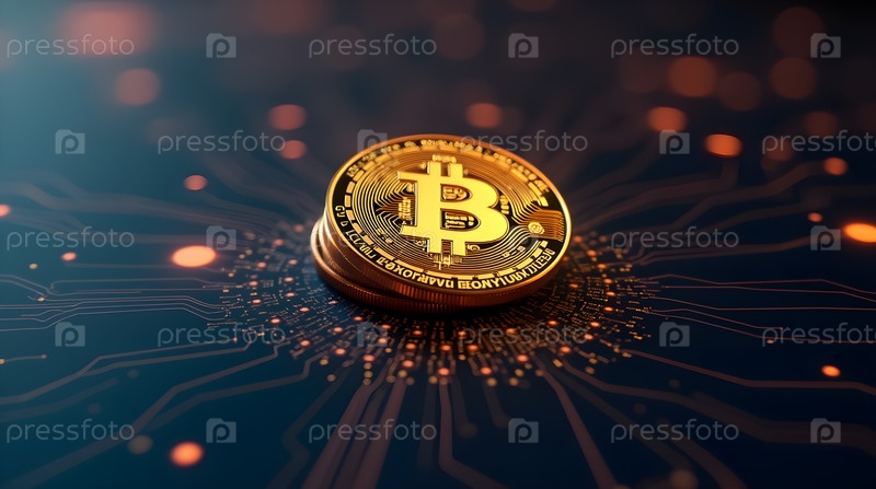 Золотая монета Bitcoin, изображение создано с помощью AI