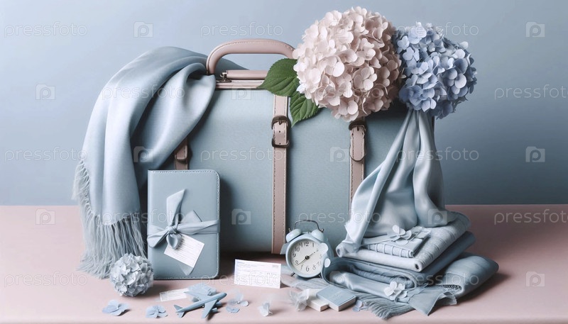 Товары для путешествий, включая багаж, паспорт и билеты на место назначения, Ai generated image