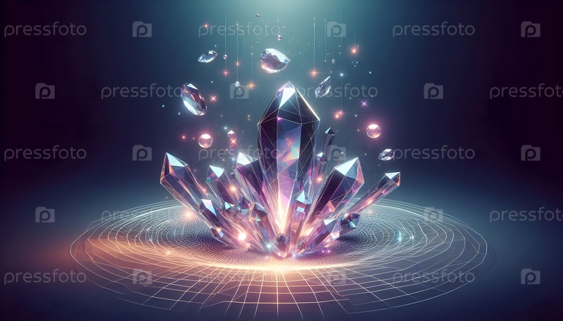 Плавучие кристаллы с преломлением света, изображение создано с использованием Ai