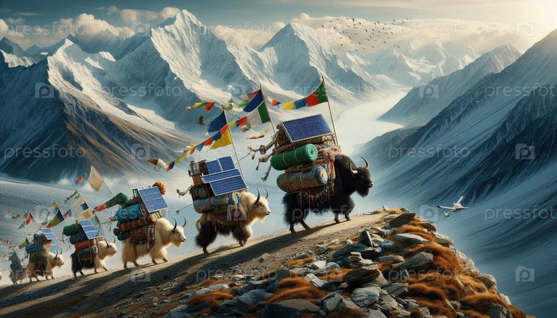 Тибетские солнечные караваны Як, созданное искусственным интеллектом изображение