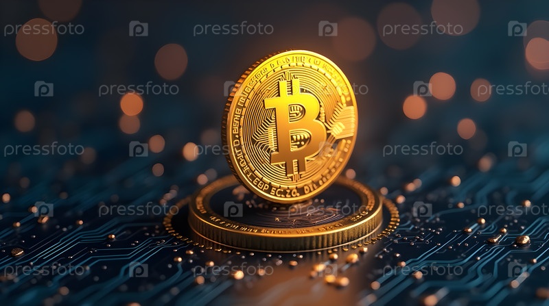 Золотая монета Bitcoin, изображение создано с помощью AI