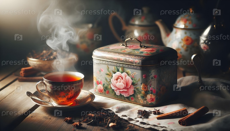 Чайная банка с цветочным узором, изображение создано AI