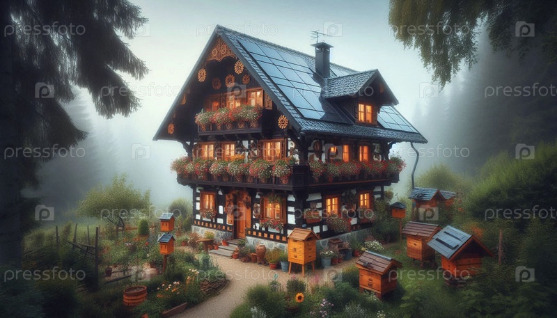 Немецкий Timber-Frame Haus, ИИ сгенерированное изображение