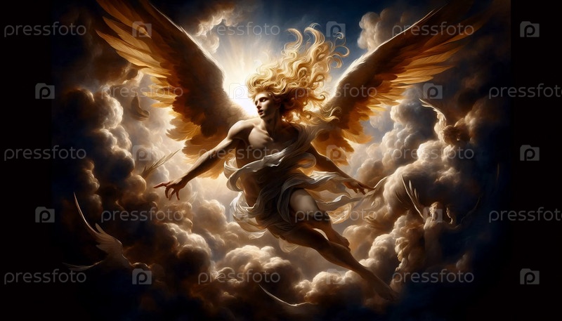 Ангел-барокко с драматическим факельным освещением, Ai generated image