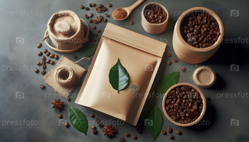 Кофейный пакет с крафт-бумагами, изображение создано с помощью Ai