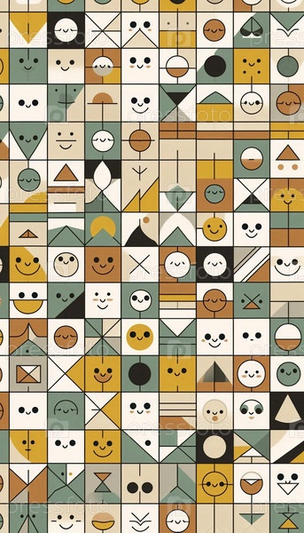 Геометрический шаблон кавайи с милыми формами лиц, Ai generated image