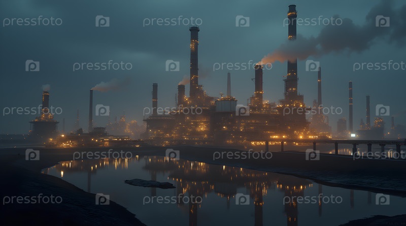 Гидроэлектростанция с светящимися топливными элементами и паровыми отверстиями, Ai generated image
