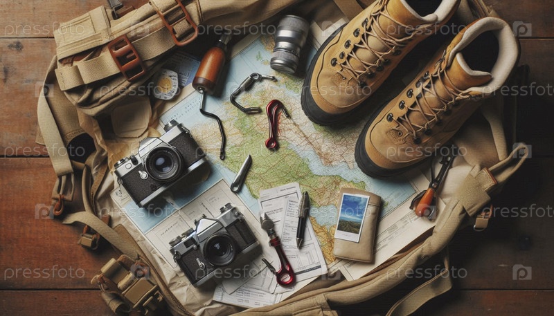 Товары для путешествий, включая багаж, паспорт и билеты на место назначения, Ai generated image