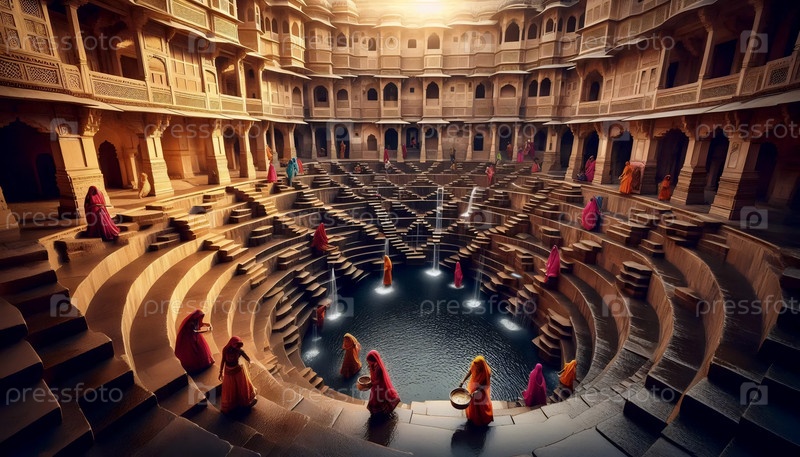 Древние ступеньковые колодцы Индии, изображение создано искусственным интеллектом