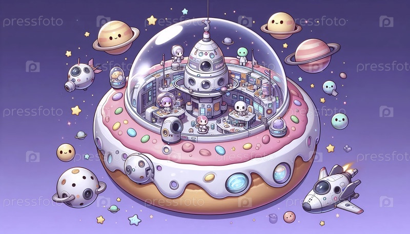 Подробная иллюстрация чиби крошечной космической станции, Ai generated image