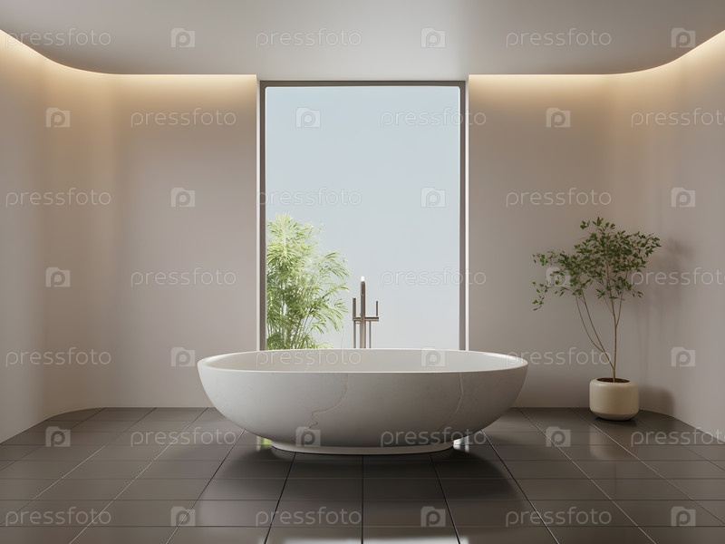 Минималистическая ванная комната со свободно стоящей ванной, изображение создано с помощью Ai