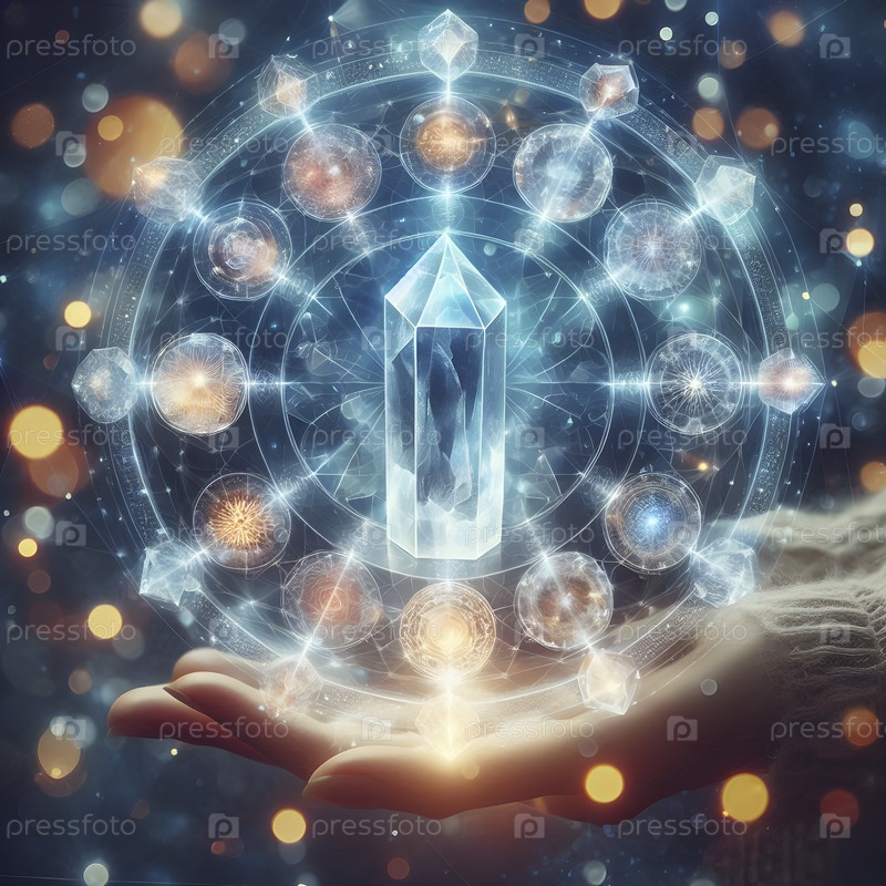 Кварцевая кристаллическая сетка, наложенная на точки чакры, Ai created image
