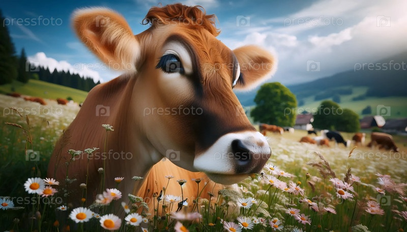 Молочная корова крупный план, Ai generated image
