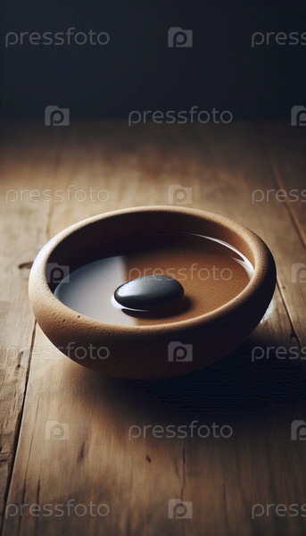 Гладкий камень в маленькой глиняной чашке с водой, Ai generated image