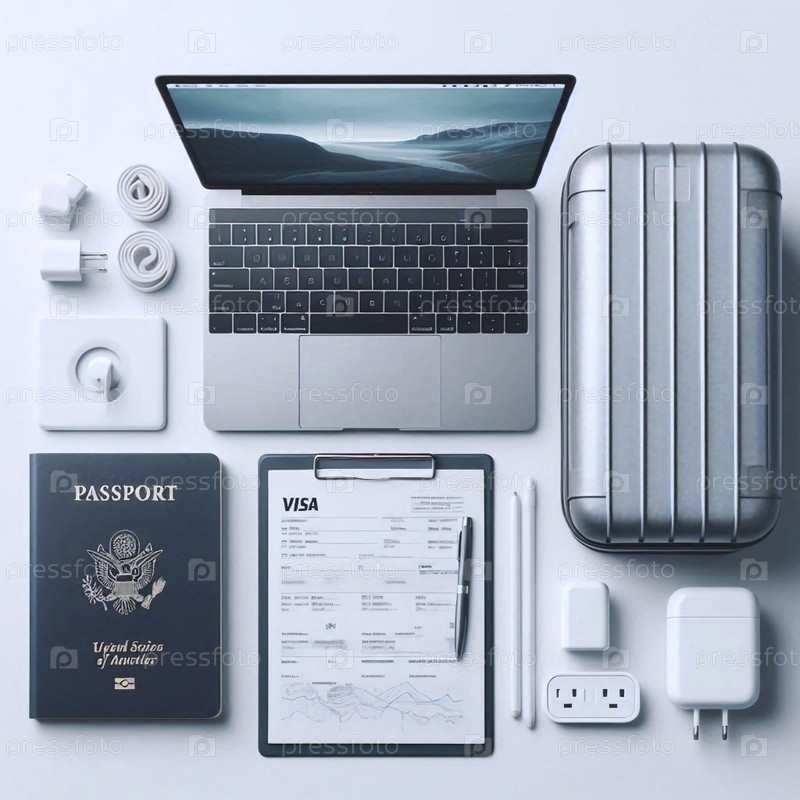 Товары для путешествий, включая багаж, паспорт и билеты на место назначения, Ai generated image