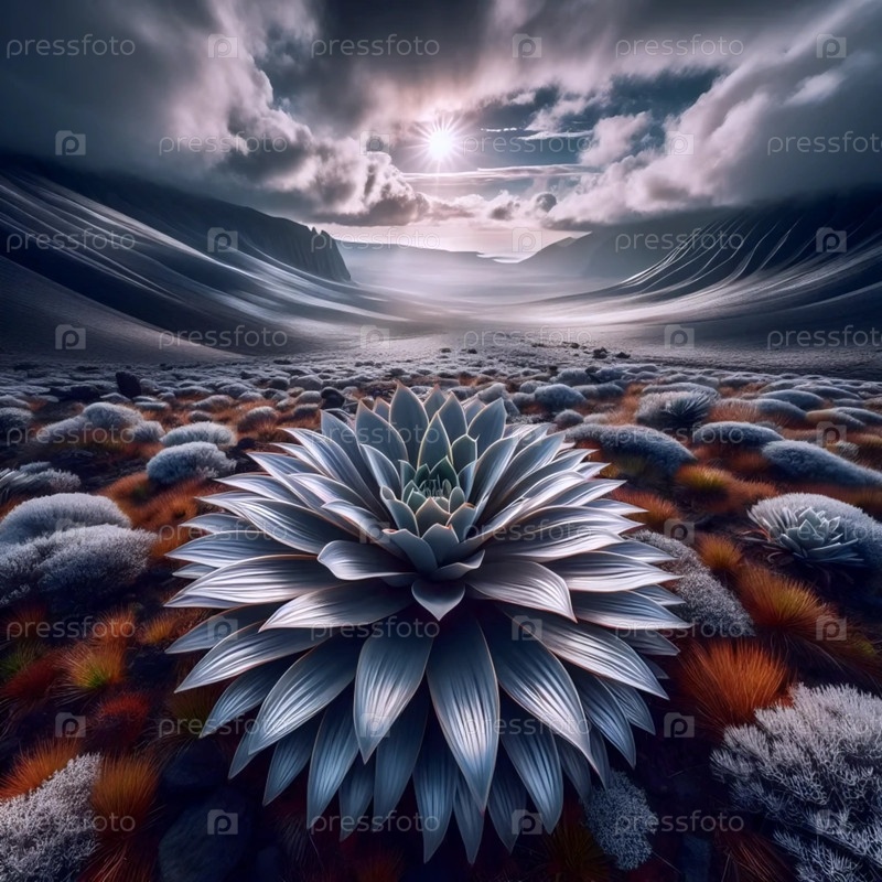 Растение серебряного меча на вулканических склонах, Ai generated image