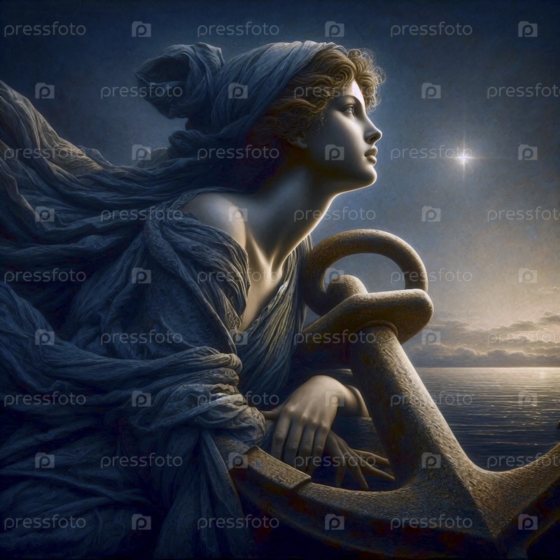 Аллегория Надежды с якорем, масло на холсте, Ai generated image