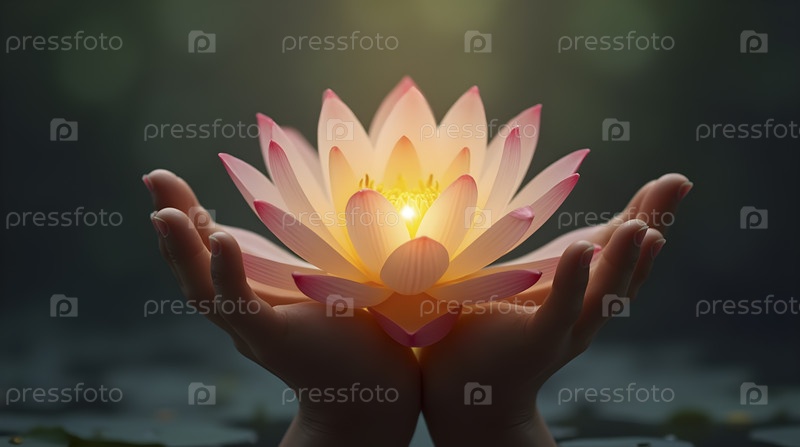Плавающий цветок лотоса со светящимся ядром, Ai generated image