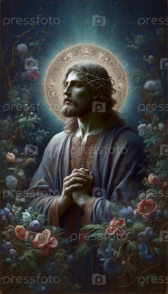 Прерафаэльский портрет Христа в Гефсимании, Ai generated image