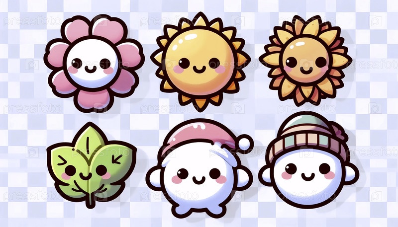 Набор клипартов с сезонными иконами кавайи, Ai generated image