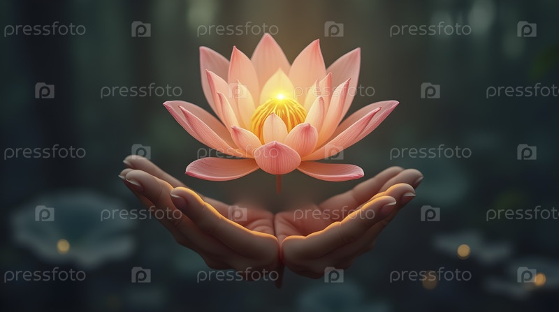 Плавающий цветок лотоса со светящимся ядром, Ai generated image