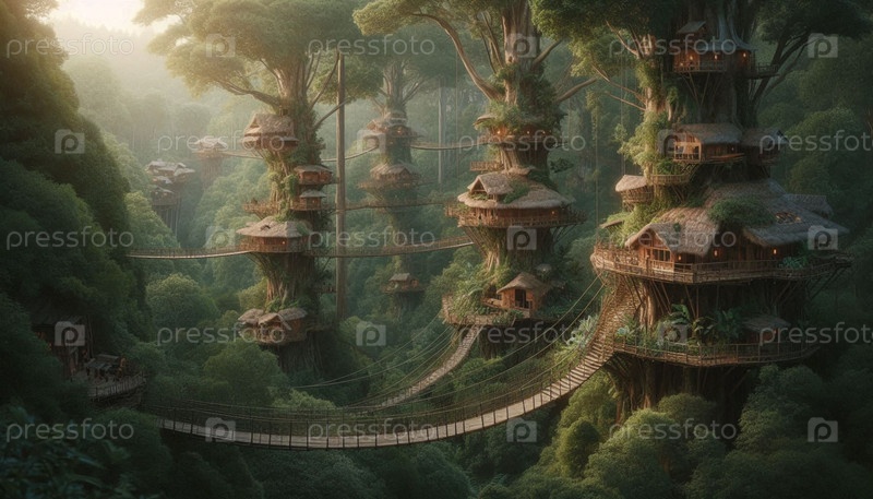 The Zero-Waste Sacred Treehouse Village, ИИ сгенерированное изображение