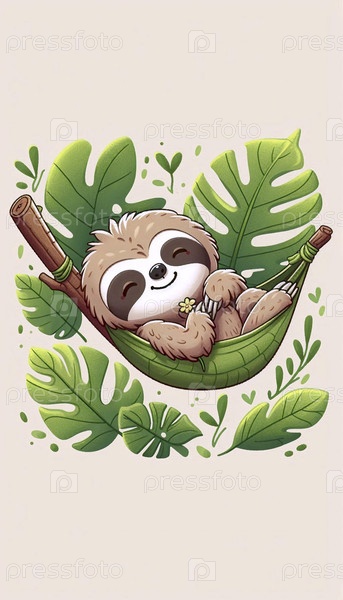 Кавайская сцена ленивца в гамаке, Ai generated image
