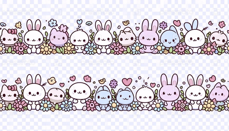 A kawaii floral and animal border clipart, Ai generated image Кавайский цветочный и животный пограничный клипарт