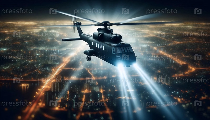 Вертолет со светофором над ночным городом, Ai generated image