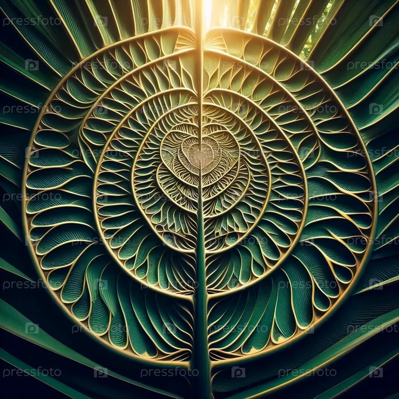 Фибоначчи в венах пальмовых листьев, Ai generated image