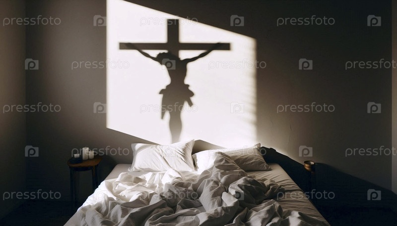 Тень кружевного занавеса, образующая символ рыбы на стене, Ai generated image